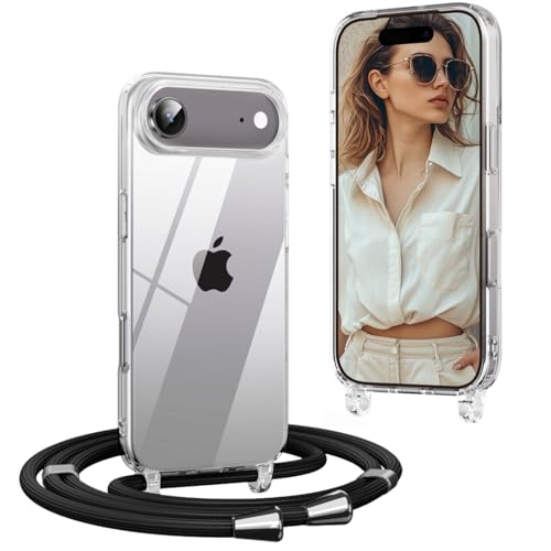 OLEPHY Coque avec Cordon pour iPhone 17 6,3'', Coque avec Collier Ajustable, [Antichoc] [Anti-Rayures] Cover avec Tour de Cou, Noir