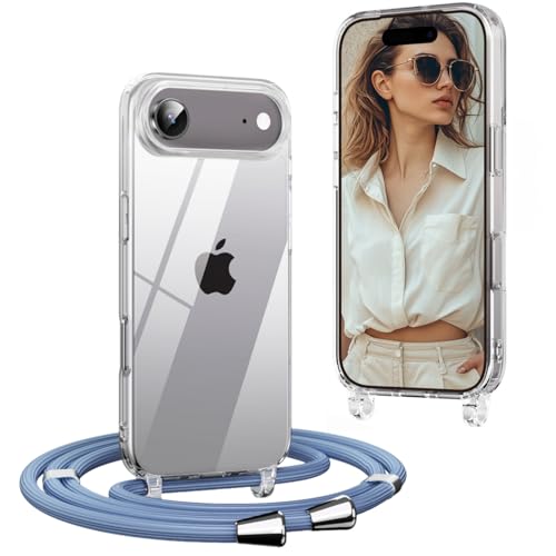 OLEPHY Coque avec Cordon pour iPhone 17 6,3'', Coque avec Collier Ajustable, [Antichoc] [Anti-Rayures] Cover avec Tour de Cou, Bleu