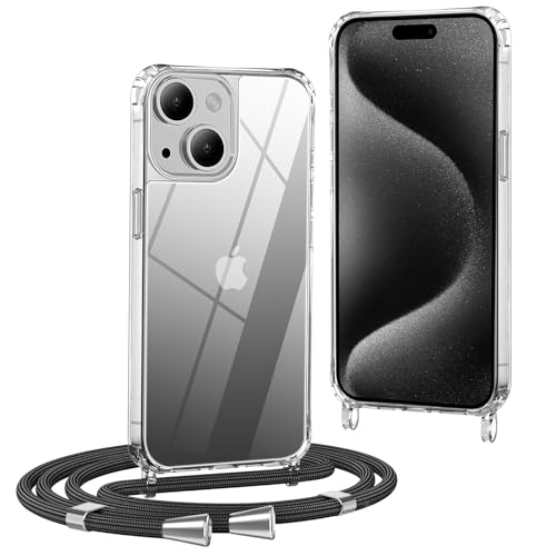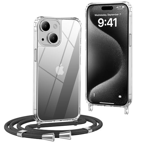 OLEPHY Coque avec Cordon pour iPhone 13 6,1'', Coque avec Collier Ajustable, [Antichoc] [Anti-Rayures] Cover avec Tour de Cou, Noir