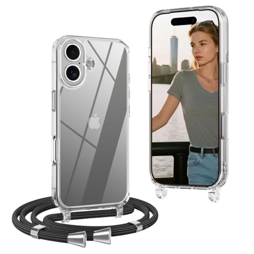 OLEPHY Coque avec Cordon pour iPhone 16 Pro 6,3'', Coque avec Collier Ajustable, [Antichoc] [Anti-Rayures] Cover avec Tour de Cou, Noir
