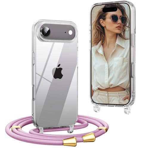 OLEPHY Coque avec Cordon pour iPhone 17 6,3'', Coque avec Collier Ajustable, [Antichoc] [Anti-Rayures] Cover avec Tour de Cou, Or Rose