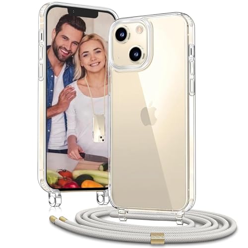 OLEPHY Coque avec Cordon pour iPhone 13 6,1'', Coque avec Collier Ajustable, [Antichoc] [Anti-Rayures] Cover avec Tour de Cou, Doré