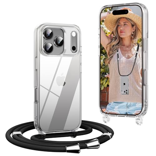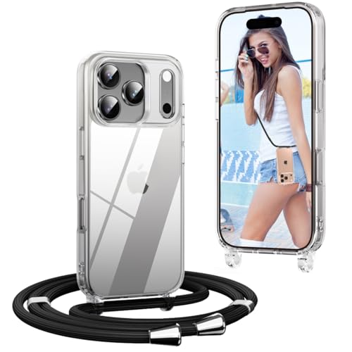 OLEPHY Coque avec Cordon pour iPhone 17 Pro Max 6,9'', Coque avec Collier Ajustable, [Antichoc] [Anti-Rayures] Cover avec Tour de Cou, Noir