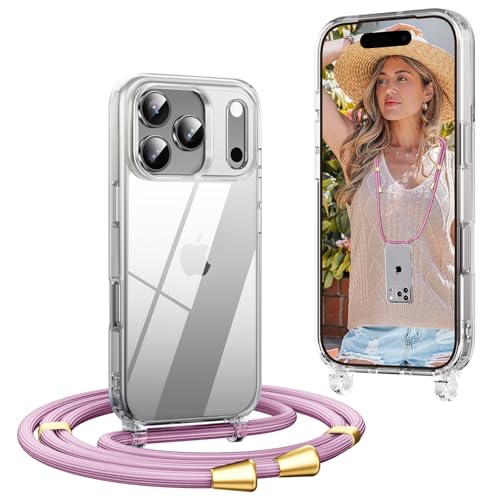 OLEPHY Coque avec Cordon pour iPhone 16 Pro Max 6,9'', Coque avec Collier Ajustable, [Antichoc] [Anti-Rayures] Cover avec Tour de Cou, Or Rose
