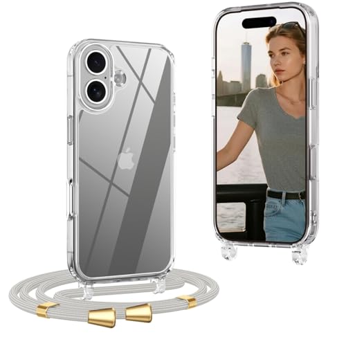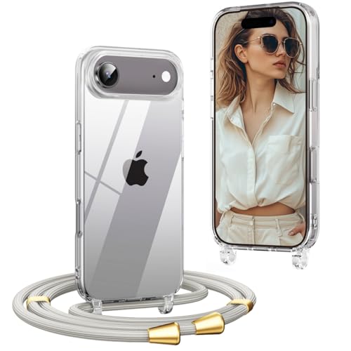 OLEPHY Coque avec Cordon pour iPhone 17 6,3'', Coque avec Collier Ajustable, [Antichoc] [Anti-Rayures] Cover avec Tour de Cou, Beige