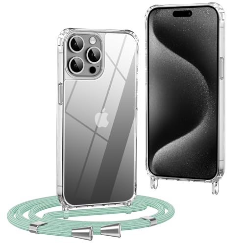 OLEPHY Coque avec Cordon pour iPhone 15 Pro Max 6.7'', Coque avec Collier Ajustable, [Antichoc] [Anti-Rayures] Cover avec Tour de Cou, Vert Matcha