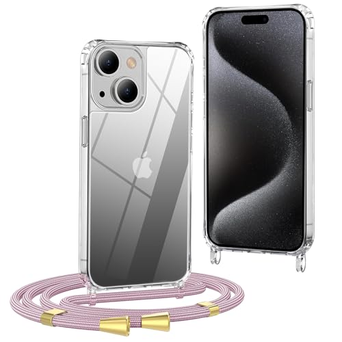 OLEPHY Coque avec Cordon pour iPhone 15 6,1'', Coque avec Collier Ajustable, [Antichoc] [Anti-Rayures] Cover avec Tour de Cou, Or Rose