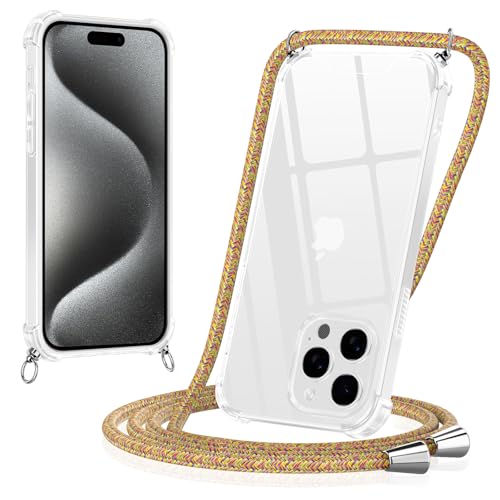 Yoedge Coque pour iPhone 15 Pro Max avec Cordon 6,7", Transparente Coque Collier Réglable Téléphone Étui Portable Lanyard Housse, Etui avec PC + TPU Bumper Anti-Chute Protection Case, Arc-en-Ciel