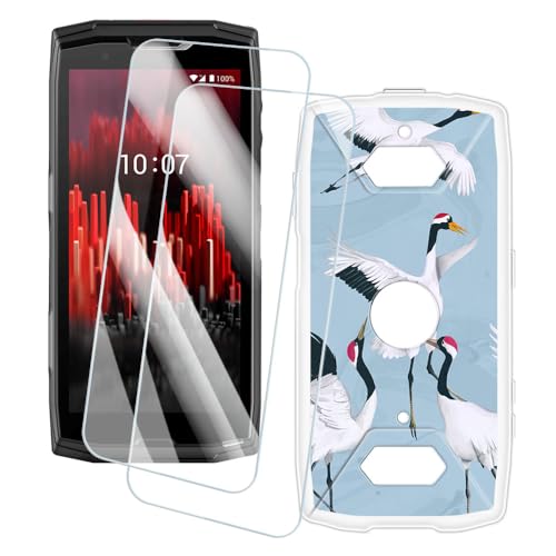OAGELIM 2 Pack Protège-Écran + Coque Compatible avec Crosscall Core-X4 (5.45 Pouce) Coque Impression Artistique Personnalisée et Film Verre Trempé (Grue)