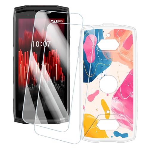 OAGELIM 2 Pack Protège-Écran + Coque Compatible avec Crosscall Core-X4 (5.45 Pouce) Coque Impression Artistique Personnalisée et Film Verre Trempé (Coloré)