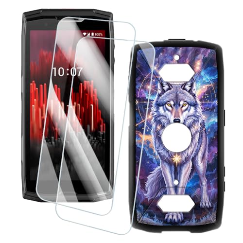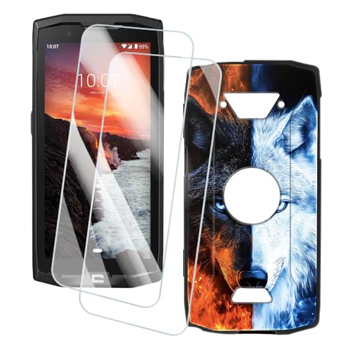 OAGELIM 2 Pack Protège-Écran + Coque Compatible avec Crosscall Core-X4 (5.45 Pouce) Coque Impression Artistique Personnalisée et Film Verre Trempé (Loup)