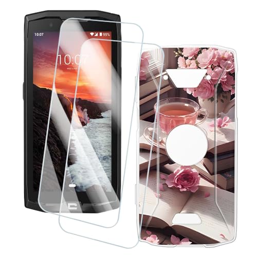 OAGELIM 2 Pack Protège-Écran + Coque Compatible avec Crosscall Core-X4 (5.45 Pouce) Coque Impression Artistique Personnalisée et Film Verre Trempé (Après-midi Rose)