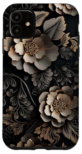 Motif floral vintage en dentelle noire et dorée Coque pour iPhone 11
