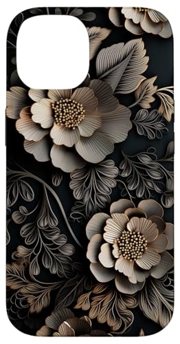 Motif floral vintage en dentelle noire et dorée Coque pour iPhone 14