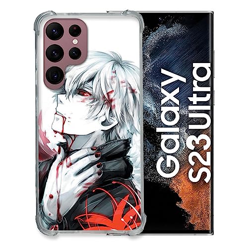 Cokitec Coque Renfocée en Verre Trempé pour Samsung Galaxy S23 Ultra Manga Tokyo Ghoul Kaneki Blanc