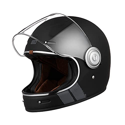 ORIGINE Casque de Moto intégral Vintage de Coque en Fibre de Verre avec visière approuvé ECE (Strip Black,M)