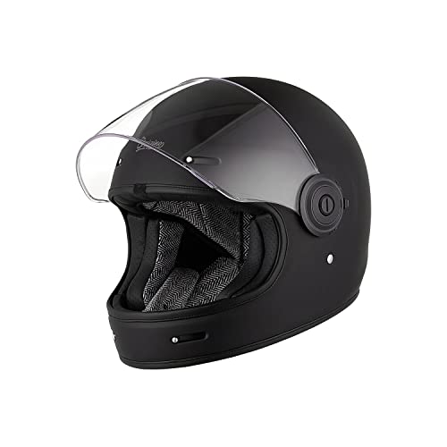 ORIGINE Casque de Moto intégral Vintage de Coque en Fibre de Verre avec visière approuvé ECE (Classic Black,M)