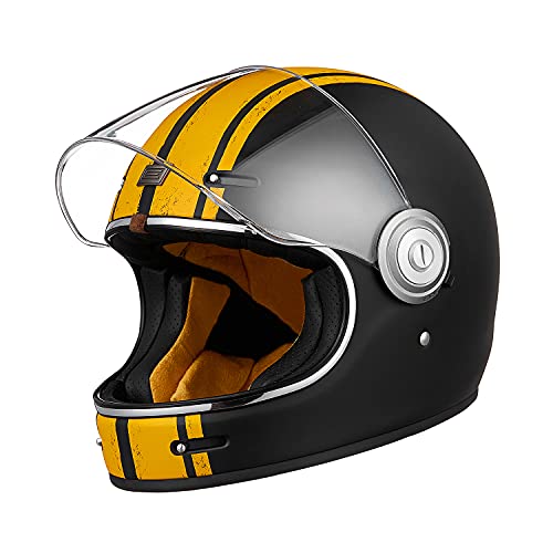 ORIGINE Casque de Moto intégral Vintage de Coque en Fibre de Verre avec visière approuvé ECE (Custom Yellow Black,L)