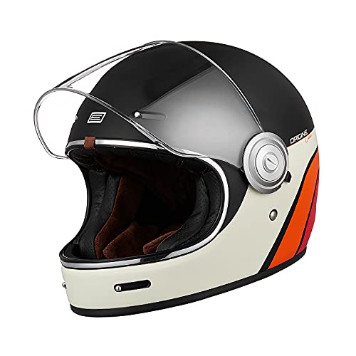 ORIGINE Casque de Moto intégral Vintage de Coque en Fibre de Verre avec visière approuvé ECE (Strip Black,XL)