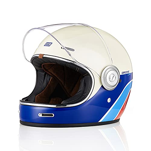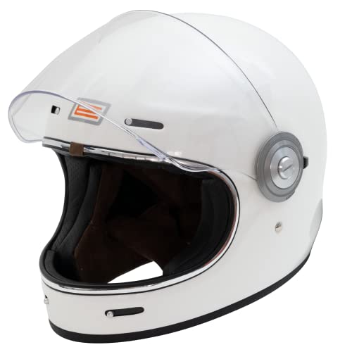 ORIGINE Casque de Moto intégral Vintage de Coque en Fibre de Verre avec visière approuvé ECE (Classic White,L)