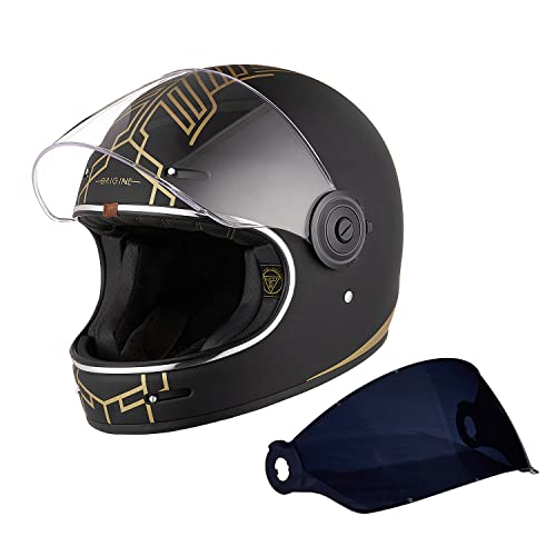 ORIGINE Casque de Moto intégral Vintage de Coque en Fibre de Verre avec visière approuvé ECE (Distinguished Black,XL)