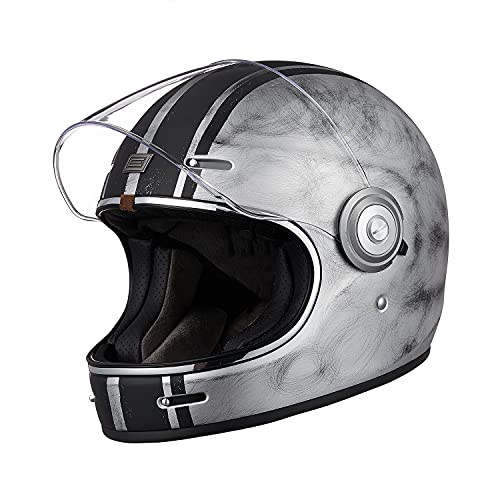 ORIGINE Casque de Moto intégral Vintage de Coque en Fibre de Verre avec visière approuvé ECE (Custom Silver,XL)