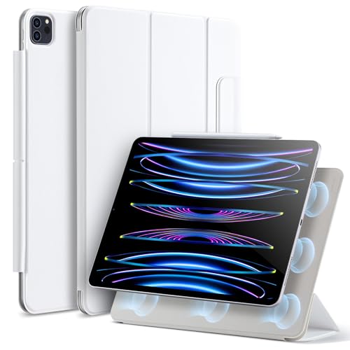 ESR Coque Magnétique Rebound Compatible avec iPad Pro 12,9 Pouces (2022/2021/2020), iPad Air 13 (2025/2024), Fixation Magnétique, Support à Deux Positions, Support Pencil, Veille/réveil Auto, Blanc