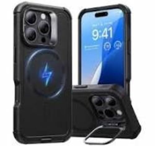 ESR Coque MagSafe pour iPhone 16 avec Support Stash - Cyber Armor avec Support de Rangement - iPhone 16 Pro Max - Noir