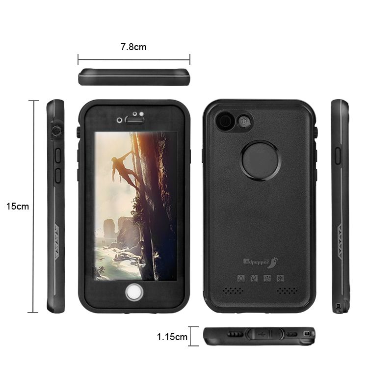 RedPepper Coque Etanche Anti Choc pour iPhone, Couleur: Noir, Smartphone: iPhone 7+/8+