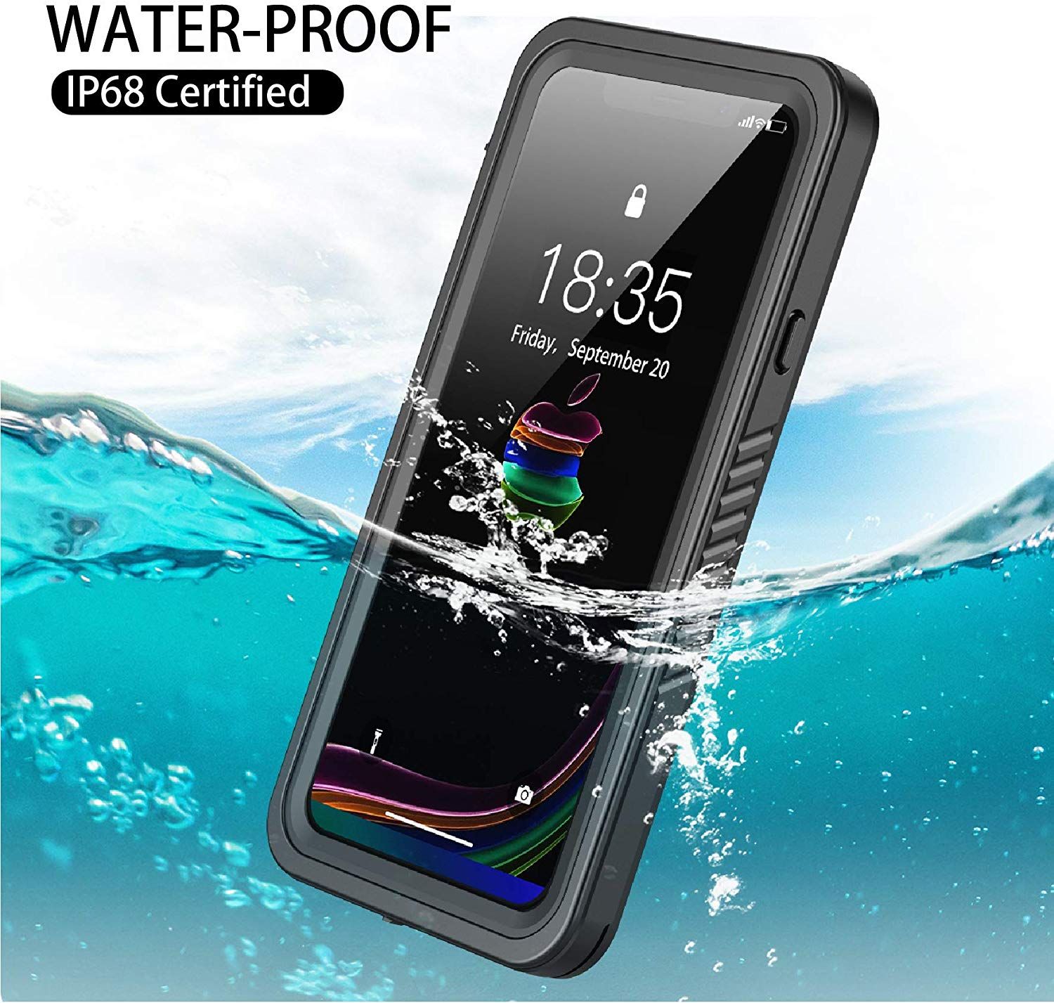 RedPepper Coque Etanche Anti Choc pour iPhone, Couleur: Noir, Smartphone: iPhone XR