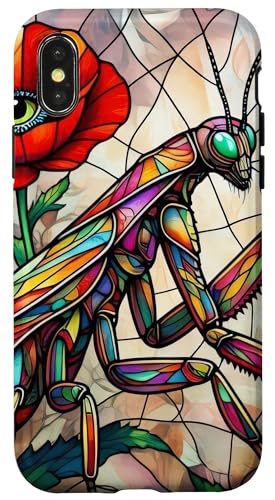 Vitrail en Verre teinté Coquelicot Vibrant Insecte Fleur Coque pour iPhone X/XS