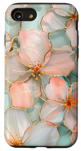 Fleurs Roses et coralliennes dans Un Style vitrail, Une Fleur Coque pour iPhone SE (2020) / 7/8