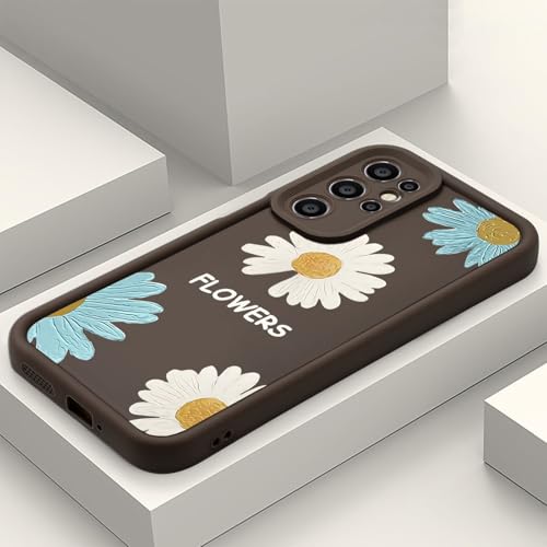 HAONANDE Coque Fleur pour Samsung Galaxy S25 Ultra 5G, Étui Mignon Marguerite Motif Design Aesthetic Housse de Téléphone pour Femmes Filles, Mince Silicone Antichoc Protection Cover Case Marron