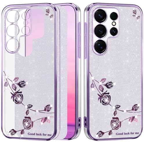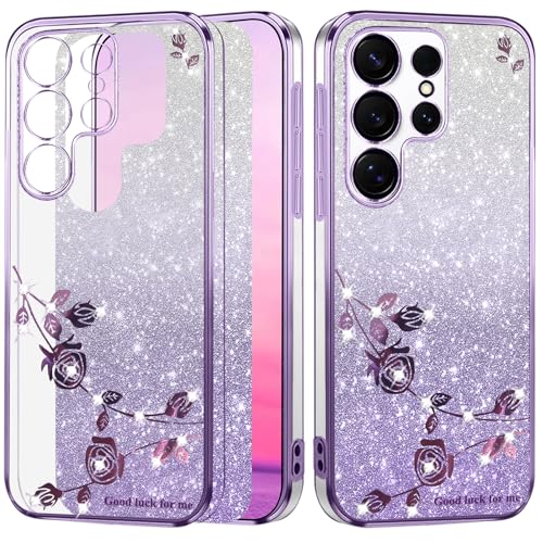 Yarxiawin Étui pour Samsung Galaxy S25 Ultra Silicone Glitter Mince, Effet Paillette pour Samsung S25 Ultra Coque Transparente Doux Fleur Housse Souple Rose Case Antichoc (Violet)