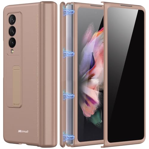 Miimall Cover pour Samsung Galaxy Z Fold 3, [Film Écran Anti-Espion] [Support] [360° Intégrale Robuste] Étui en PC Rigide avec Garde de Charnière Antichoc pour Coque Z Fold 3 Protection (Or)