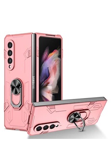Coque pour Z Fold 3 Samsung FONGWAN avec Anneau Support en Métal, Style Mécanique Antichoc - Rose