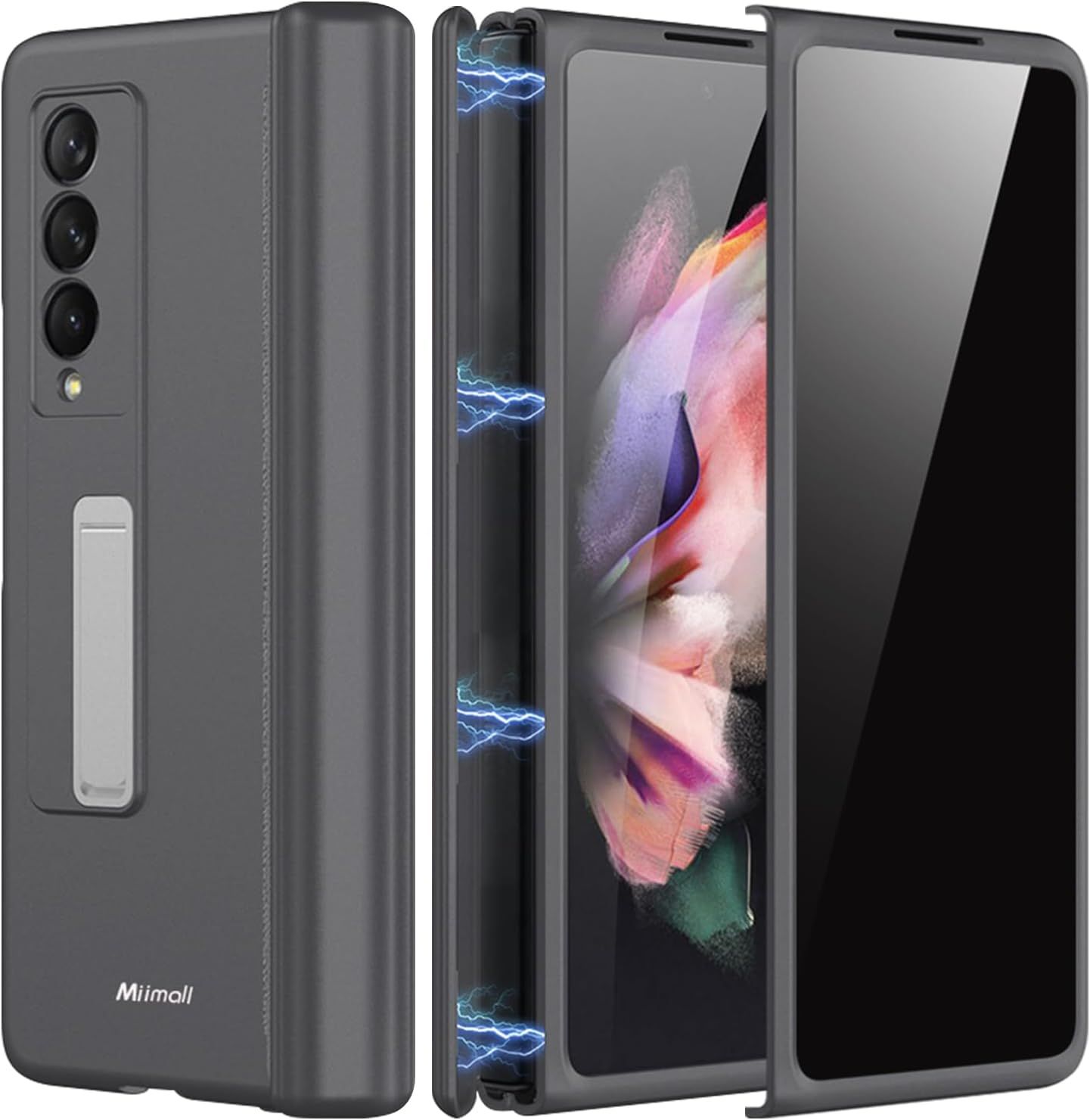 Miimall Anti Espion Étui pour Samsung Galaxy Fold 3, Case [Protecteur D'écran HD] [Protection par Charnière] [Béquille Réglable], Antichoc Résistant aux Rayures Coque 360 Z Fold 3 Matte (Gris)