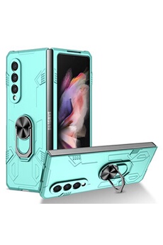 Coque pour Z Fold 3 Samsung FONGWAN avec Anneau Support en Métal, Style Mécanique Antichoc - Bleu clair