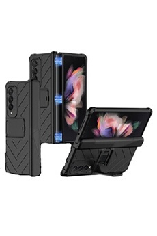 COQUE Galaxy Z Fold 3,Étui Tout Compris Pliable à charnière avec Stylo capacitif, Fente pour Stylo, de téléphone Pliable pour Samsung Galaxy Z Fold 3 5G-Le Noir
