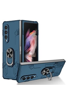 Coque pour Z Fold 3 Samsung FONGWAN avec Anneau Support en Métal, Style Mécanique Antichoc - Bleu foncé