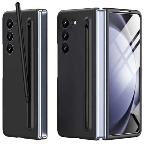 COQUE Galaxy Z Fold 5 de téléphone avec Film de Protection, Housse Tout Compris Pliable à charnière,étui à Crayons caché Pliable pour Samsung Galaxy Z Fold 5 5G-Le Noir