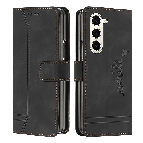 Lihondar Coque pour Samsung Galaxy Z Fold 5, Etui Coque Samsung Z Fold 5, Housse Samsung Z Fold 5, Protection Etui à Rabat Housse en Cuir PU avec Antichoc TPU Fold Housse pour Samsung Z Fold 5 (Noir)