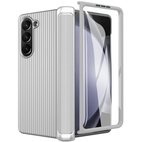 Miimall Compatible avec Coque Z Fold 5 Coque à Texture de Vague, [Protection de Charnière] [Protection d'écran Avant HD] Housse de Protection Intégralepour Galaxy Z Fold 5 (Argent)
