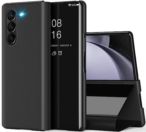 Coque Samsung Z Fold 5 5G, Clear View Flip Case Placage Miroir Effet à Rabat Rigide PC+PU Cuir Etui Housse Galaxy Z Fold 5 360 Full Body Antichoc (Noir)