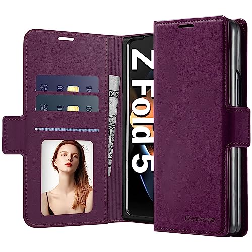 Neivi Coque Samsung Galaxy Z Fold 5 Housse Cuir avec Magnétique Premium Flip Portefeuille Emplacement Carte Fermoir Coque Samsung Z Fold 5 Etui Premium en Cuir,Antichoc Coque Galaxy Z Fold 5 (Vin)