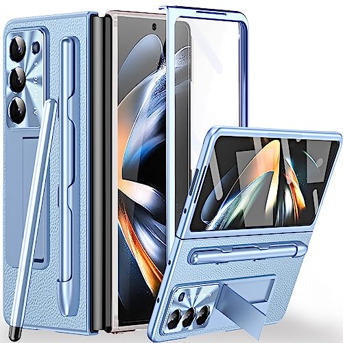 Miimall Compatible avec Coque Samsung Z Fold 5 avec Stylet, [Protection d'écran Avant] [Béquille] [Protections de Charnière] Luxe et Mode Coque de Protection Ultra-Mince pour Galaxy Z Fold 5 (Bleu)