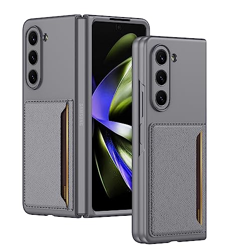 COQUE Galaxy Z Fold 5, de téléphone Ultra Fine en Cuir Souple avec Fente pour Carte avec Fonction de Support,Housse de Téléphone Pliable pour Samsung Galaxy Z Fold 5 5G-Gris