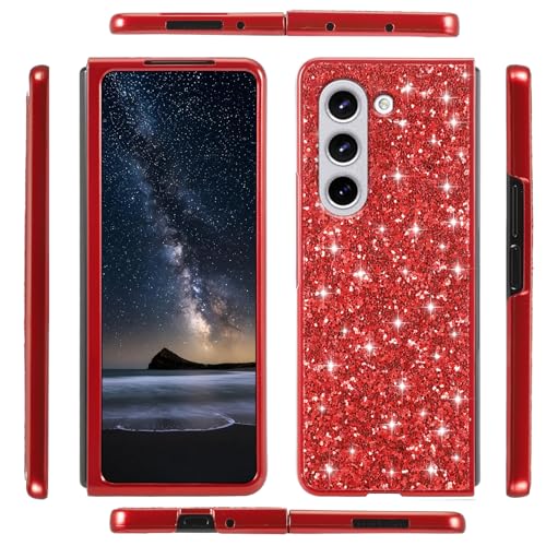 Compatible avec Coque Samsung Z Fold 5 Paillette, Ultra Mince Coque Samsung Galaxy Z Fold 5 Antichoc Housse de Protection Glitter Étui Brillant Silicone Cover pour Femmes (Rouge)