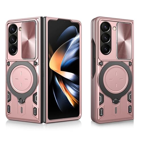 Coque pour Z Fold 5 5G, couvercle d'objectif d'appareil photo, anneau en métal, support magnétique, double couche TPU, coque de téléphone résistante aux chocs pour Samsung Galaxy Z Fold 5 5G, rose