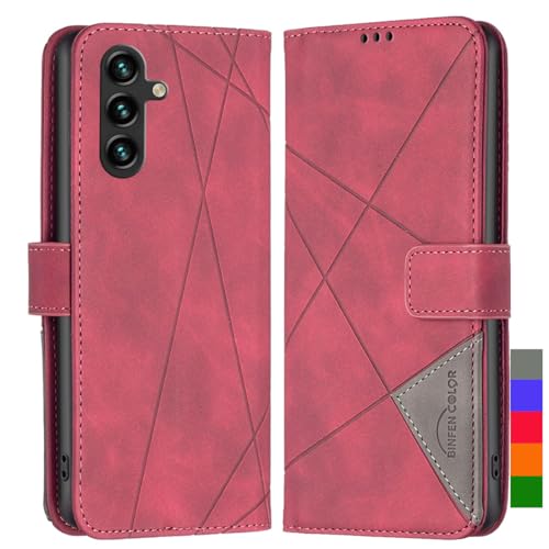 HAOYE Coque pour Samsung Galaxy A16 5G Etui, Magnétique Cuir PU/TPU Flip Cover Case, Protection Antichoc Motif Rose, Housse avec Carte Fentes/Stand Fonction. Rouge
